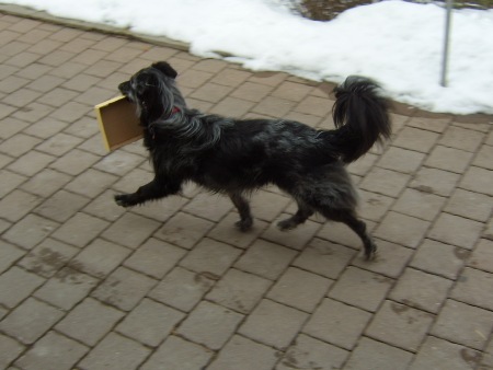 das ist Betty (6-jährig) beim Aufräumen von Altpapier