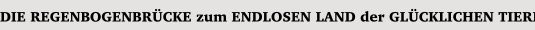 Es gibt ein Land wo die Sonne stets lacht,wo alles herrlich ist und Freude macht. Dorthin gehen die Tiere wenn sie die Erde verlassen,dort gibt es nur Liebe,keiner kennt -hassen-. Es ist das Land hinter der Regenbogenbrücke,die,die dort sind hinterliessen auf der Erde eine große Lücke, doch jedes einzelne Tier, hat es verdient...,ein Dasein hier.
