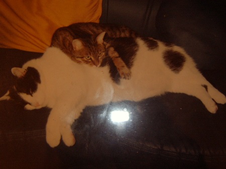 ALSOOO,bevor wir auf den Hund kamen,hatten wir zwei Katzen; Kater Bonzo u.Babykatze Kira. Bonzo hatte ich 1992 vorm Erstickungstod gerettet,nachdem Kinder ihn in einer Plastiktüte im Sandkasten auf dem Spielplatz verbuddelt hatten.